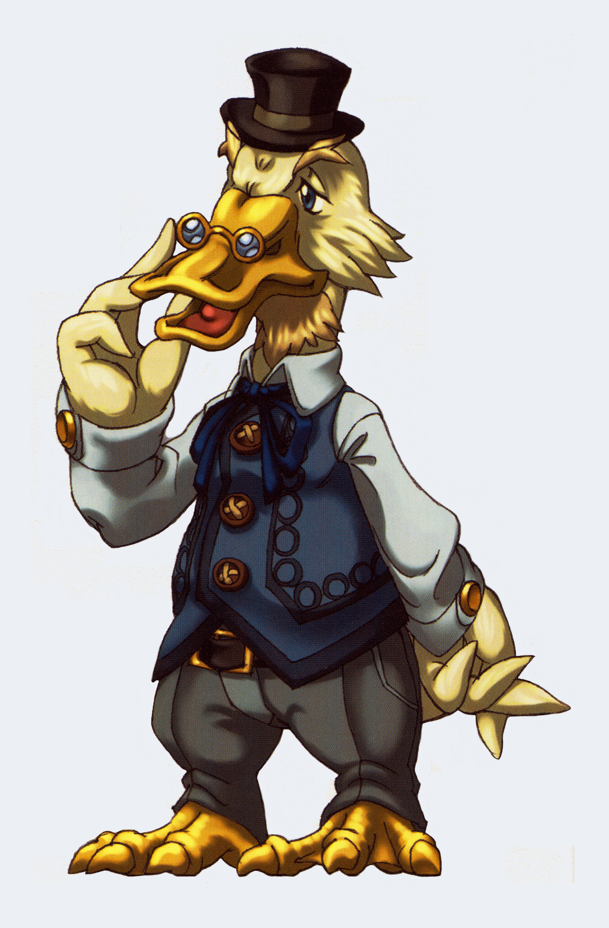Dr. Dell (in the Japanese version his named is Kingaton, with Dr. Duck being his nickname) is a support character Dark Chronicle, and he is needed to progress in the story of Chapter 3. When Max and Monica come across Argo tending a sick girl named Lin, Max gets the idea of recruiting Dr. Dell to help her out. Unfortunately, her illness is beyond the capabilities of medicine, so Lao Chao's miracle dish must make a substitute. He is automatically recruited if Max asks him for help.